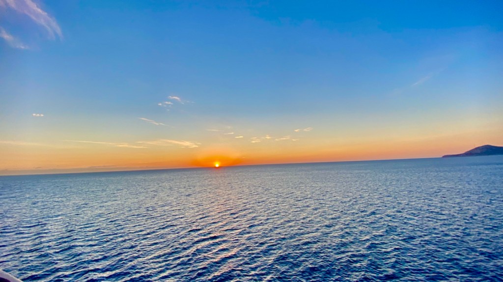 Okiiii dafür schönen Sonnenaufgang gesehen. Die Suche nach den Autos im dicken Schiffsbauch lief nicht ganz so geordnet wie auf den Schwedenfähren… aber … wir sind rausgekommen.