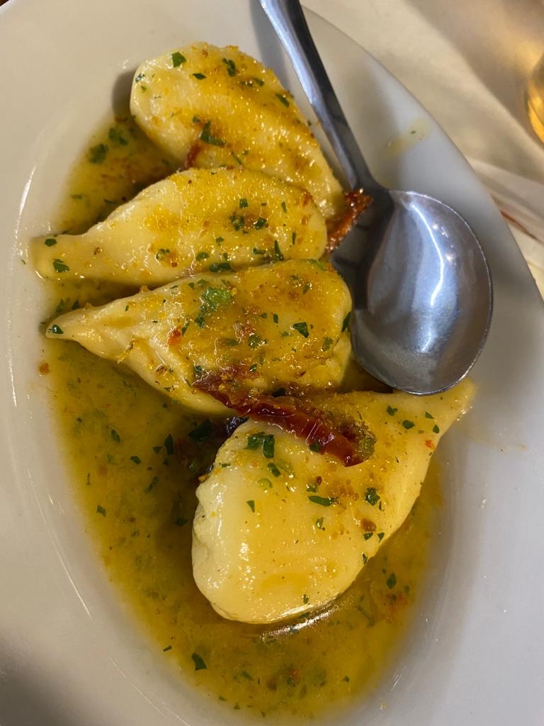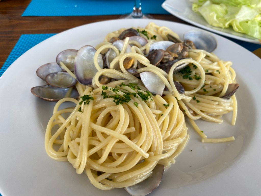 Duschen und ab zum Essen. 6 Gänge mit Wein und Wasser… 35€/Person. Wahnsinn