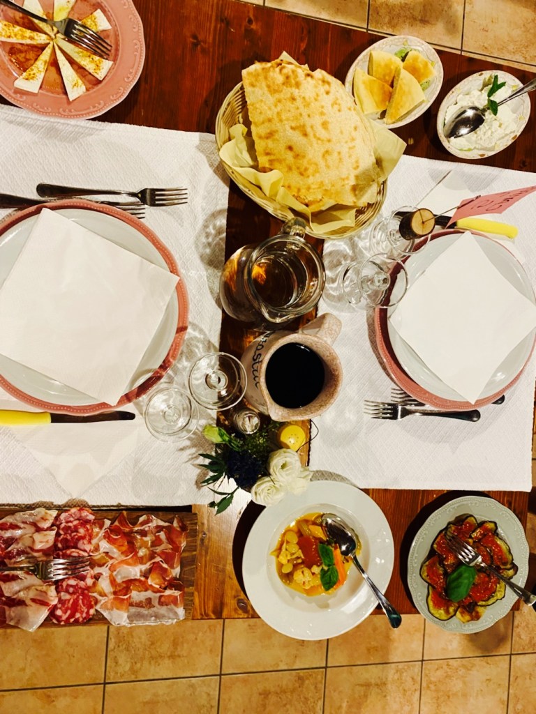 Und um 19:00 Diner…. Wie gewohnt… viele Gänge mit Wein/Wasser/Kaffee/Grappa… leeeeecker. Heute wieder mit Bildern.