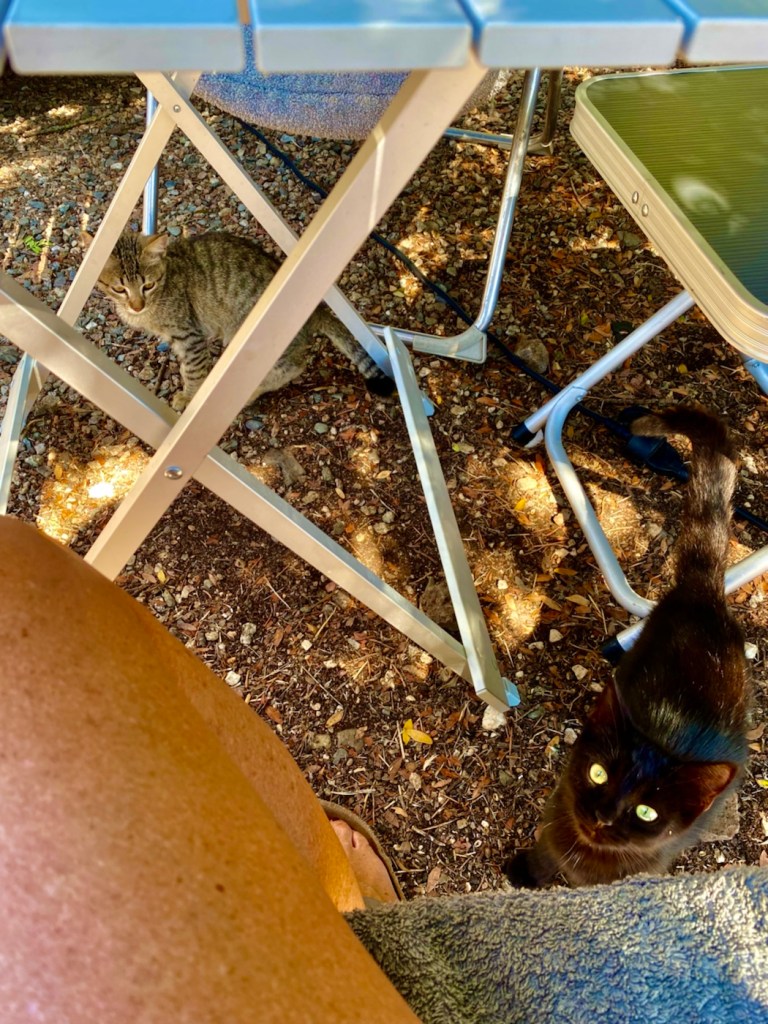 Als wir zurück kamen, haben wir den für uns schönsten Platz eingenommen und erstmal was gegessen. dabei mit den kleinen Kätzchen gekämpft, die sogar auf den Tisch springen wollten 😳
