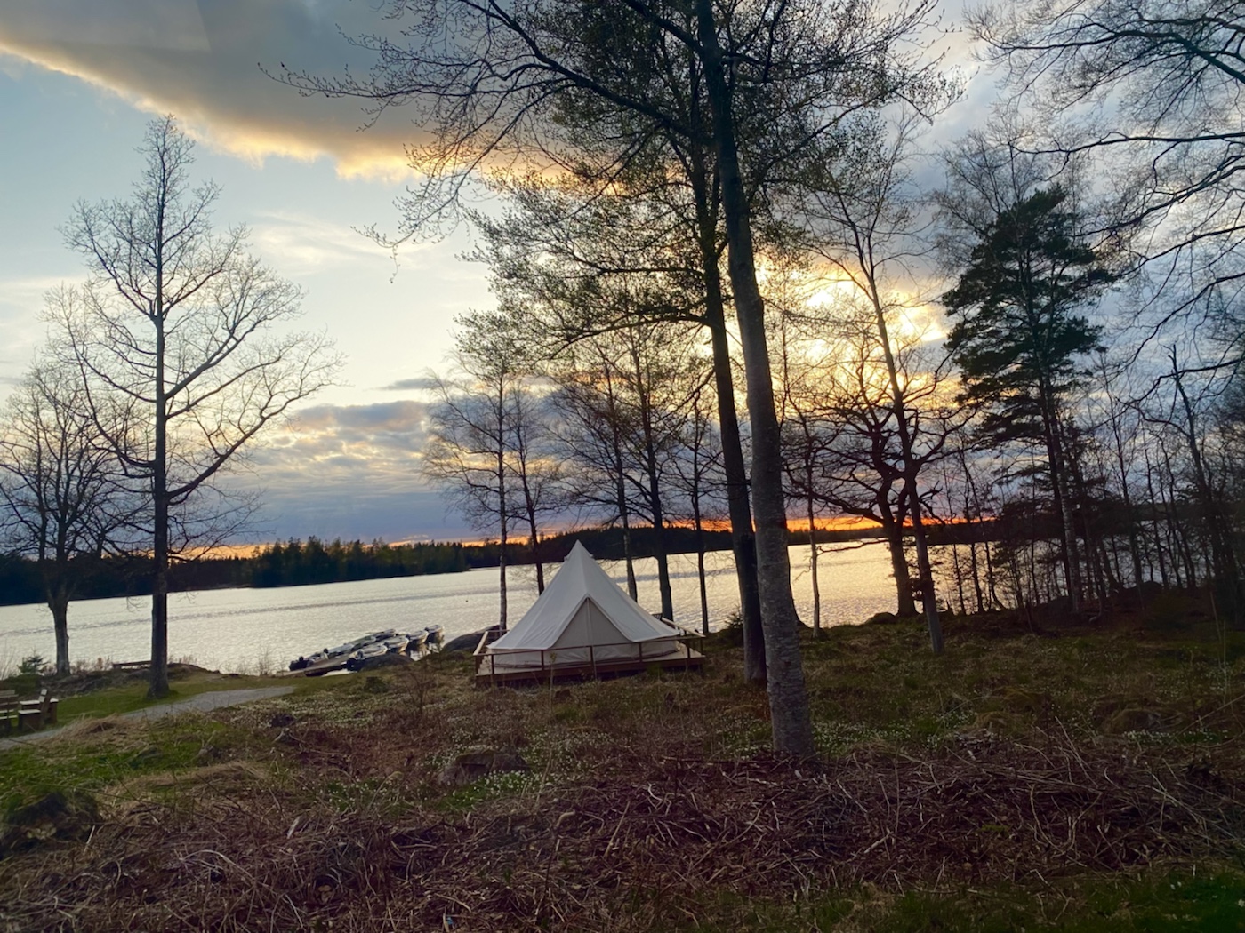 Wir haben den tollsten Platz direkt am See, denn es ist noch nichts los.