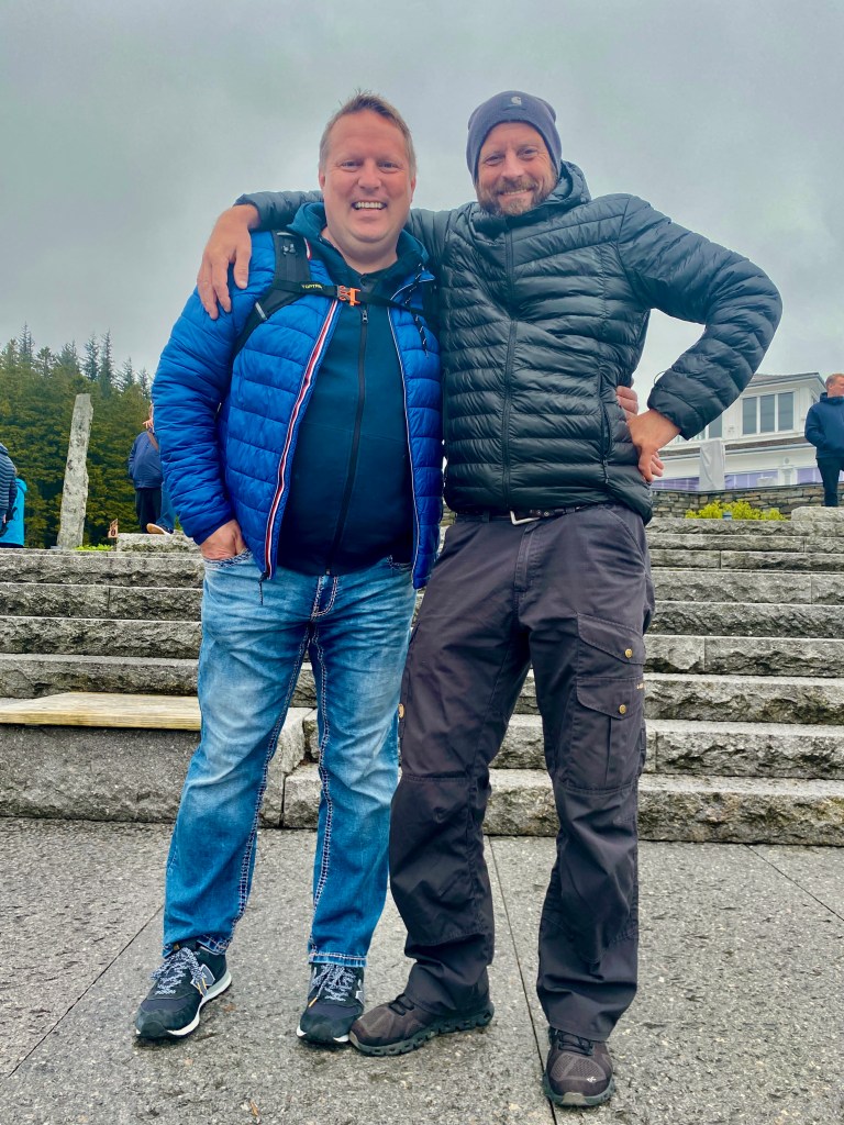 Oki mit Christian die Reiseroute ausgetüftelt, noch 5x geändert. Also morgens bei nicht schönem Wetter vom Stellplatz 5 km nach Bergen spaziert und voila….10:45 am Fischmarkt haben wir die Männer überrascht (Petra war schon eingeweiht). Welch eine Freude und wie lustig das war.