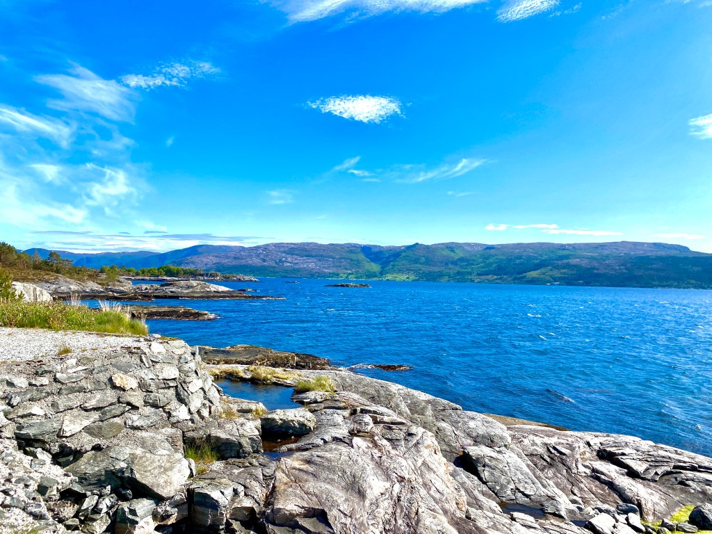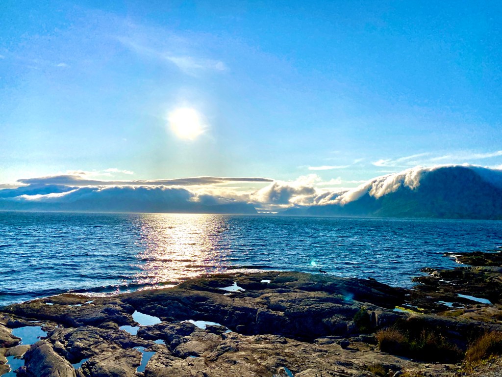 Eigentlich müssten wir hier immer die Kreuzfahrtschiffe sehen, aber ich glaube wir schlafen wenn die hier vorbei brausen. Wir stehen nämlich am vorderen Stück des Sognefjord… der längste und tiefste Fjord der Welt.