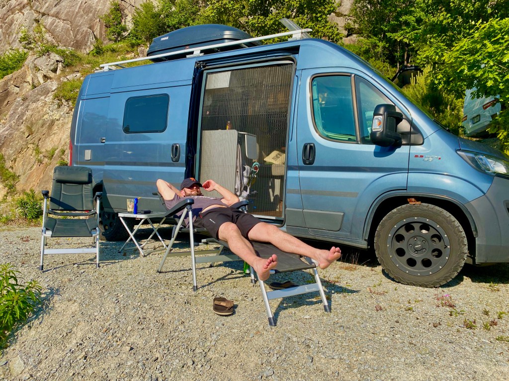 Ja… also Norwegen… 26 Grad … es ist 22:52 und wir sind gerade ins Womo. Es ist taghell und nicht wirklich kalt… scheeeee…. Und – heute war der erste Tag wo wir abends Mücken hatten… gleich das neue Gerät ausprobiert… perfekt 🤩