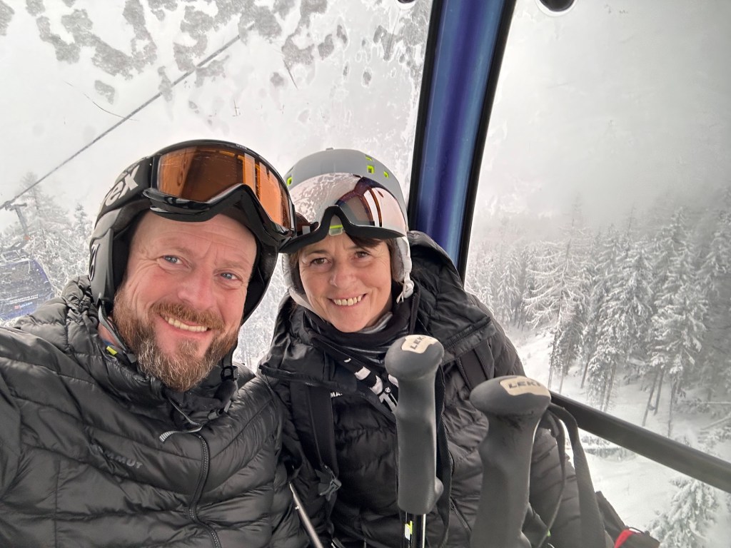 Voll früh waren wir um halb 10 am Lift… fuhren hoch… Nebel und Schnee.. gar nicht schön… und meine Beinchen waren so MonsterSchlapp, dass ich alle 10 Meter Pause machen musste… also… überhaupt nicht mein Tag und… ICH MUSS SPORT MACHEN! 🤮