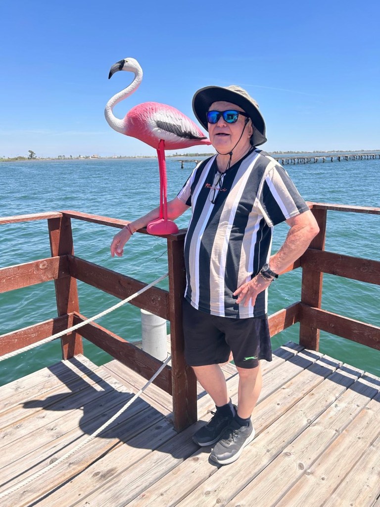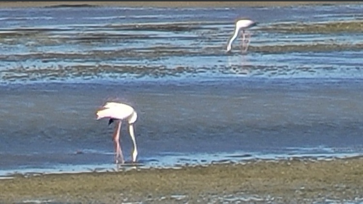 Auf dem Rückweg sind wir nochmal bei den Flamingos vorbei, die hier überall im Delta stehen.
