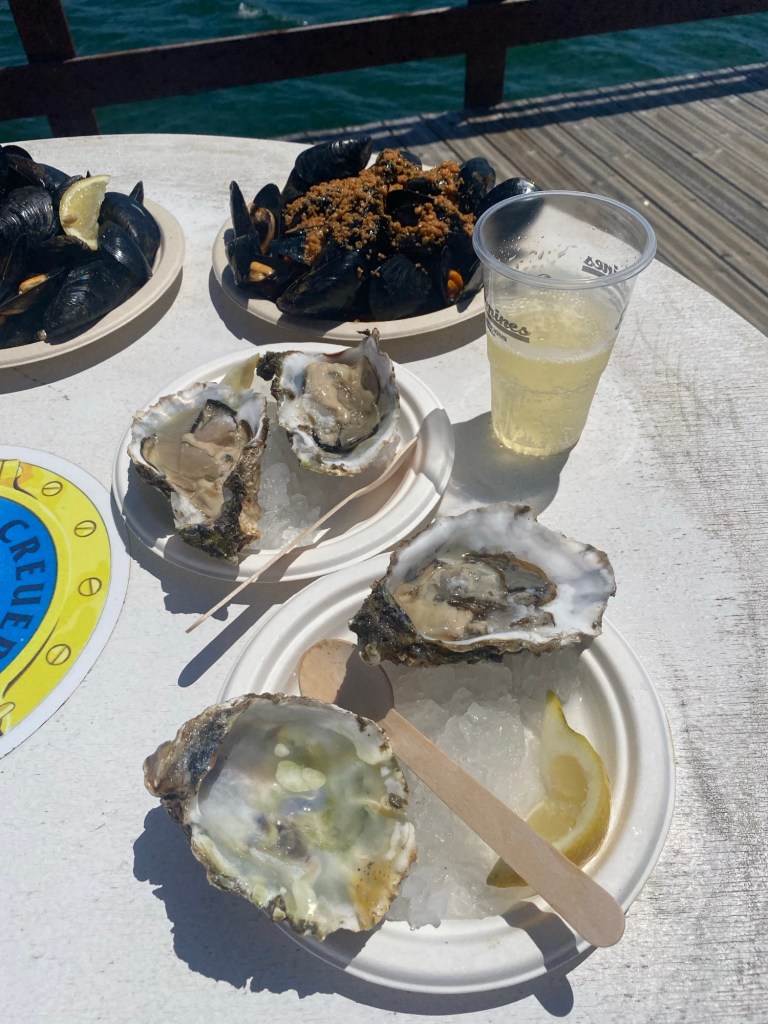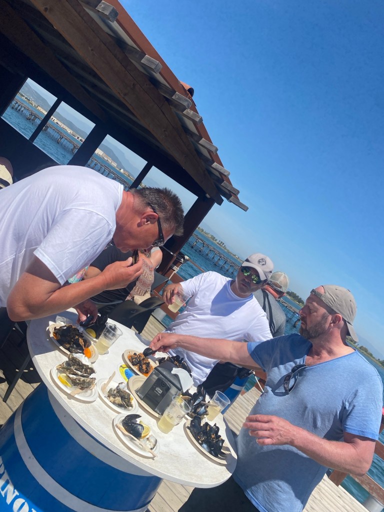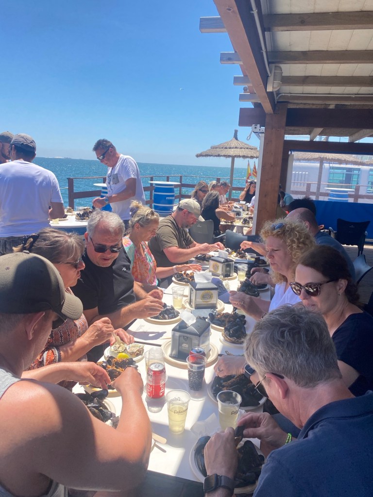 Das war ganz cool. Es gab Austern und Muscheln- und Sekt/Weisswein/Bier und Wasser. Die spanischen Muscheln sind nicht mit den französischen Felsenaustern zu vergleichen. Sie sind VIEL fleischiger und nich glibberig… meeeega 😋