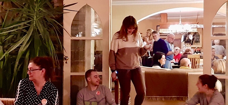 Abends sind die noch verbliebenen Gäste letztmalig in eine Kneipe zum Essen.